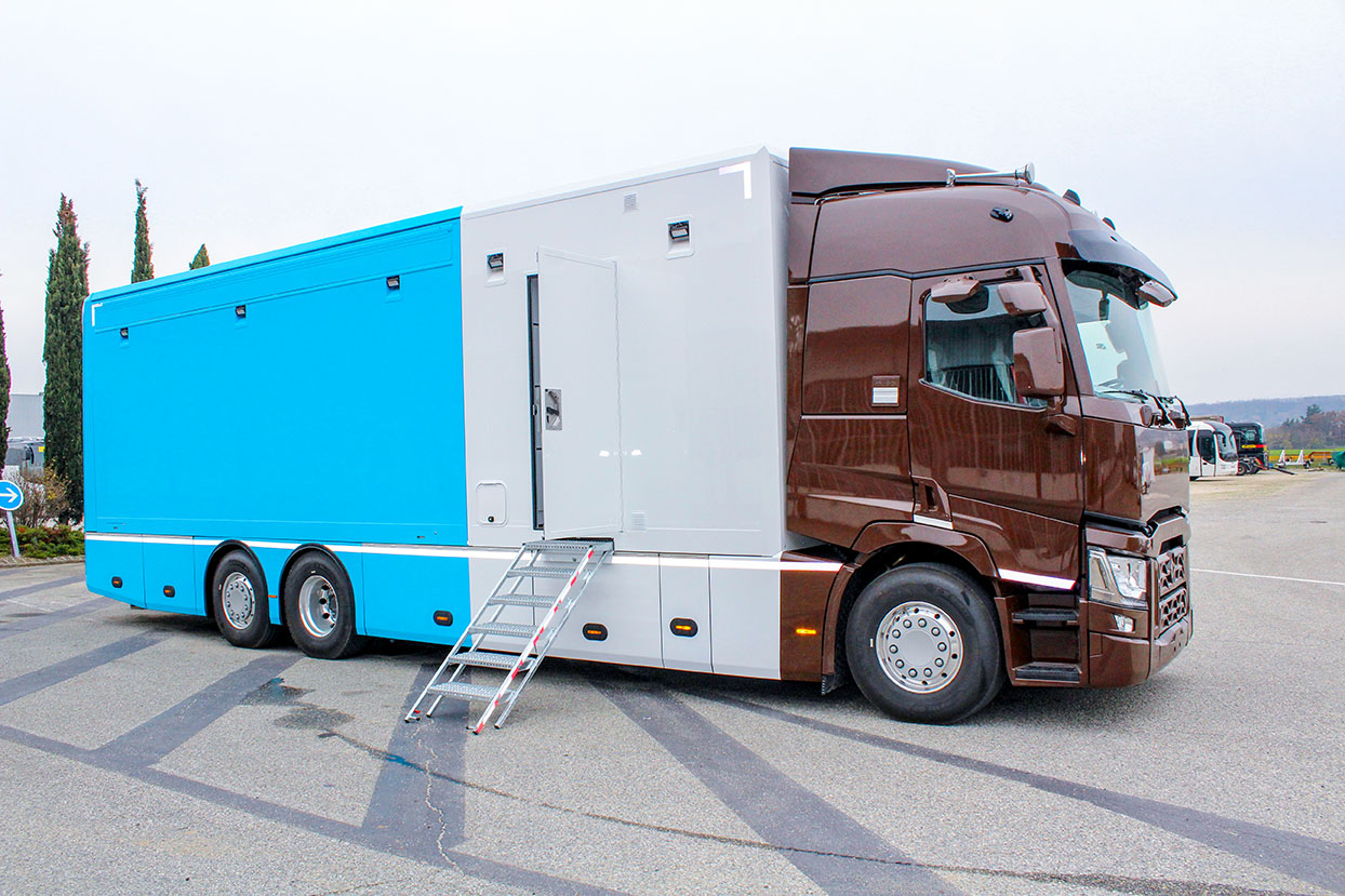 Le centre a complètement conçu et réalisé le véhicule ‘Service Course’ suivant les exigences du client AG2R. « Nous sommes partis d’une page blanche » précise le responsable du Centre Cars & Bus. Le bureau d’études du centre a réalisé les plans sur un porteur Renault T480 P6x2E6, PTAC 26T. La spécificité de ce véhicule réside dans son système d’extensions. En effet, le véhicule comporte deux zones :